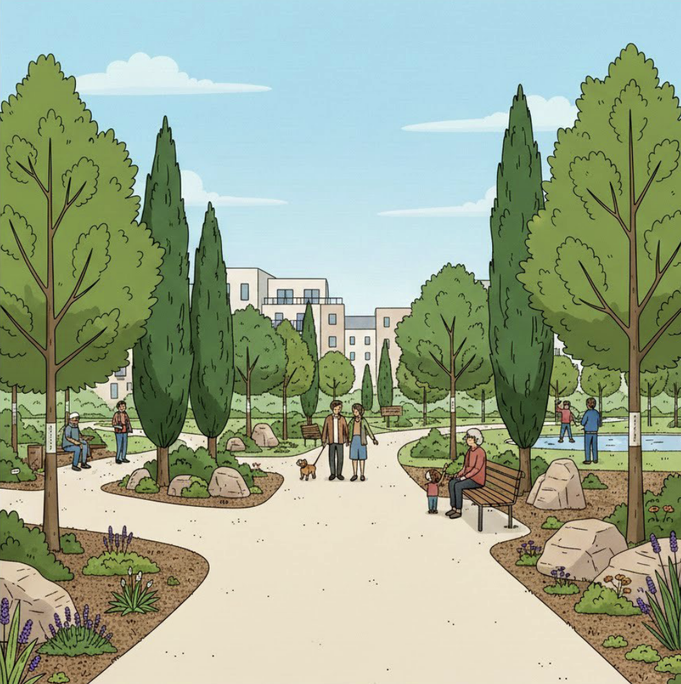 Nous développerons également un second arboretum dans le parc urbain, afin de constituer un véritable parcours botanique à l’échelle de la commune.