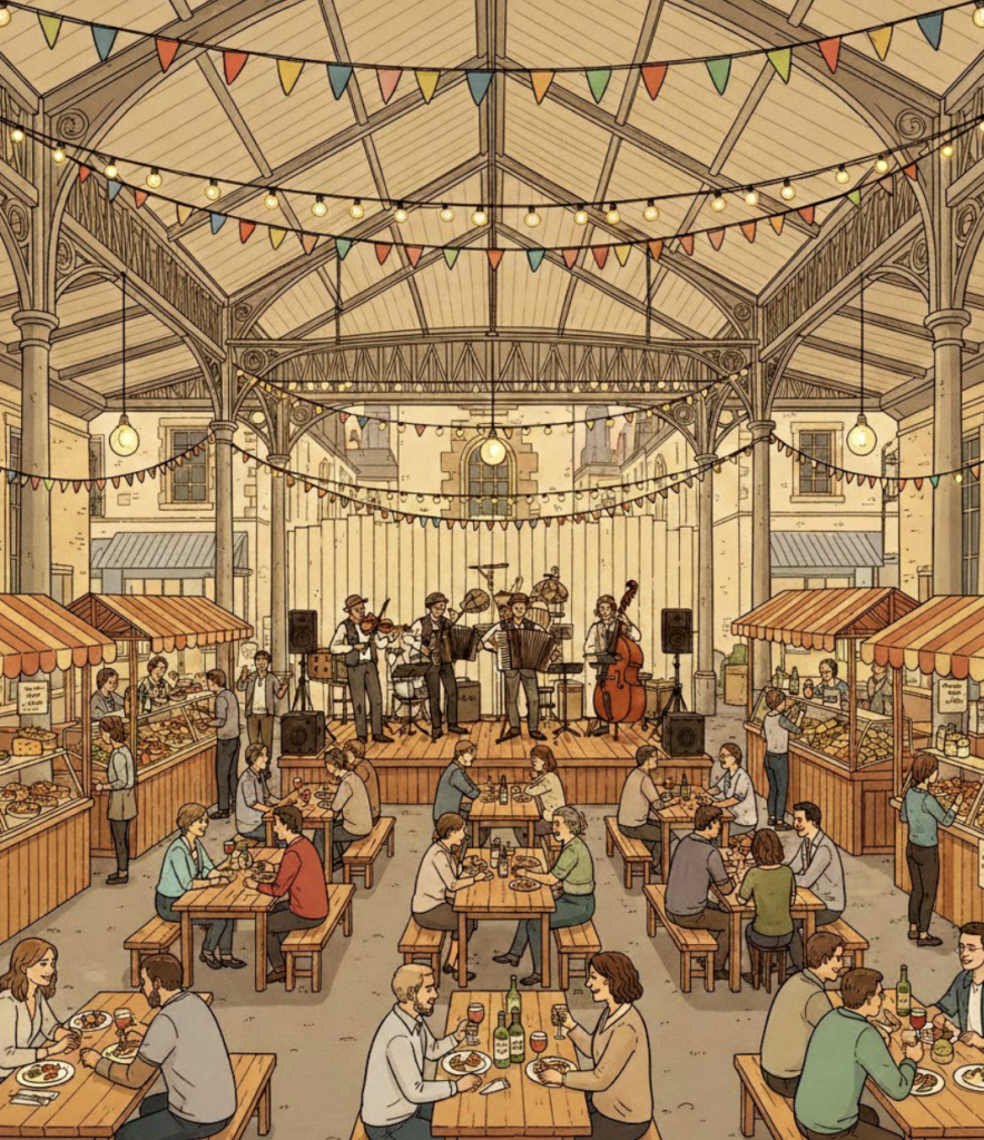 Le marché sera vivant grâce aux commerçants locaux, avec un esprit « guinguette » : musique d’ambiance ou groupe ponctuel selon les dates (en partenariat avec l’école de musique quand c’est possible), tables et espaces pour manger sur place, des temps forts annoncés à l’avance, pour donner envie de venir et de rester.